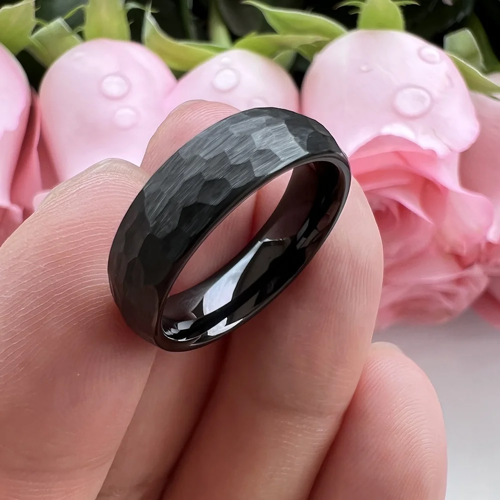 Coolstyle Jewelry 6mm Wholesale Domed Matte Finish Gunmetal Hammered Tungsten Ring for Men Women Fashion Engagement Wedding Band